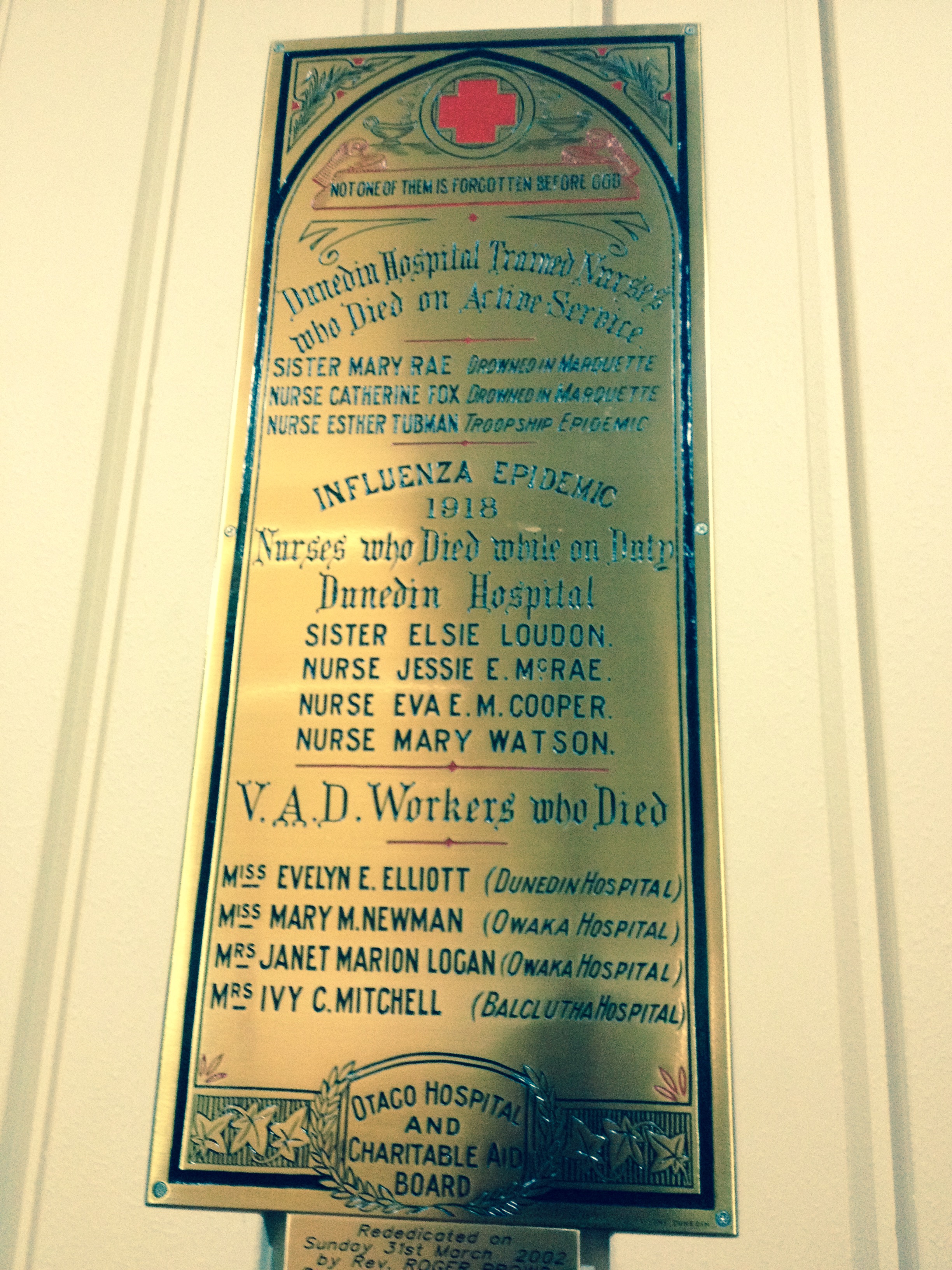 | MACRAE | Jessie Ethel | Nurse | Dunedin Hospital | 21 Nov 1918 | 25 | Anderson’s Bay Cemetery, Dunedin | Otago Witness, 27 November 1918, page 34, Sun, Volume VI, Issue 1779, 27 October 1919, Otago Dailey Times, Issue 18074, 23 October 1920, page 6 |