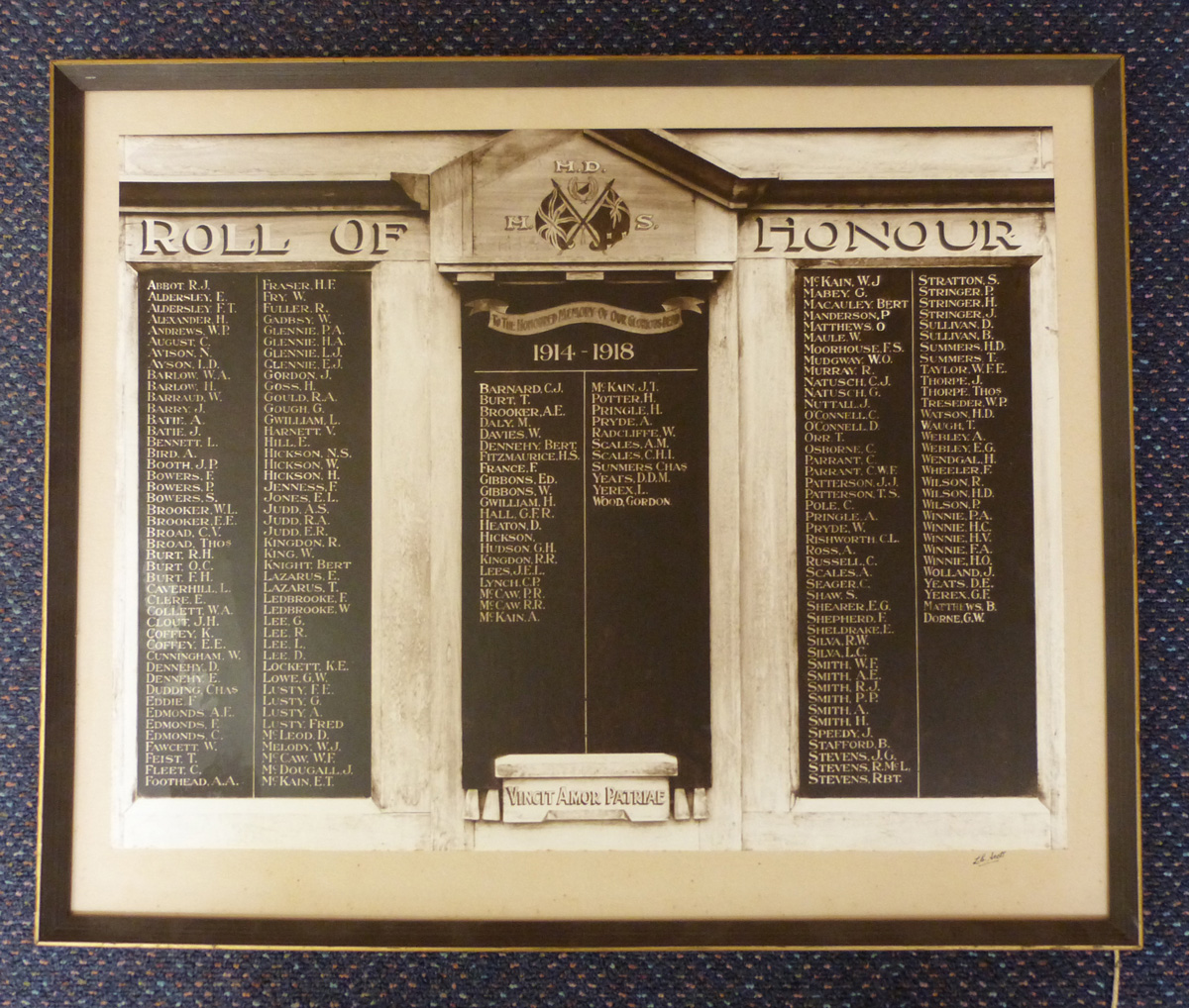 Please note that this Roll of Honour appears to be 'missing'. Thanks to Maureen Read (nee Wolland) for the first photo and Helen Philpott for the second which was taken in 1969 by local photographer L C Scott. You will notice on the photos the letters H D H S ( Hutt District High School), this is because Hutt Central School had a small High School on the same site. Hutt Valley High School did not open until 1926.