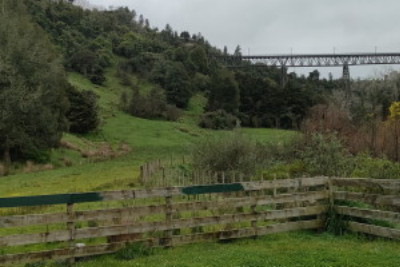 Makohine Viaduct - August 2020 - the flat area beside the fence was the original SH1 road before it was realigned. Looking toward the site of the slip