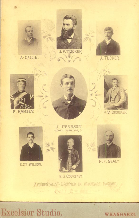 The yacht Minerva was struck by a squall about three miles off Marsden Point just opposite One Tree Point at Whangarei on Sunday 2 October 1892 and eight of the nine men on board were drowned.